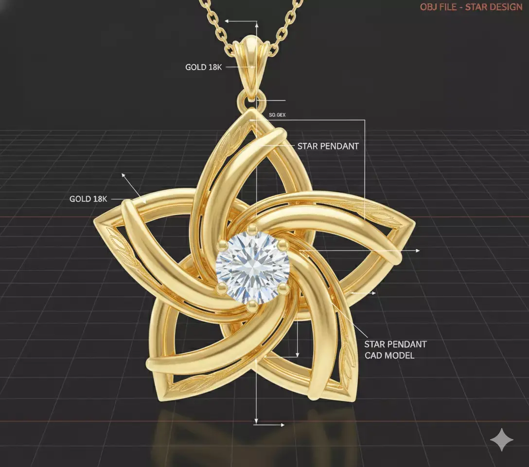 The Eternal Star Blossom Pendant is a breathtaking luxury jewelry design inspired by the harmony of nature and the radiant geometry of a five-pointed star.Its elegant, intertwined petals create a mesmerizing floral spiral, symbolizing eternity, balance, and luminous beauty.