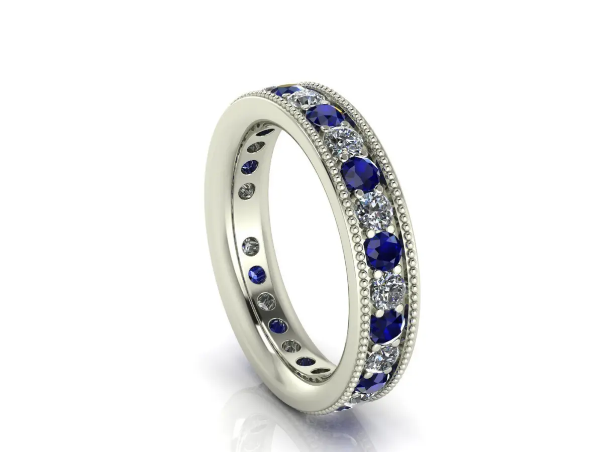 Classic Eternity Band that can be fully set with diamonds, but is also designed to hold alternating stone colors, due to the even number of stones.