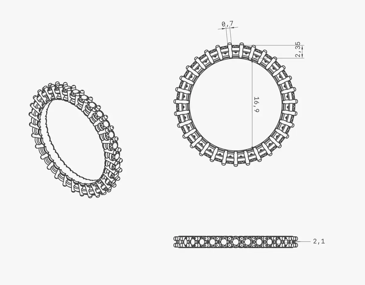 High-quality 3D printable eternity ring model designed for professional jewelry manufacturing and casting.This classic full eternity band features evenly spaced 2.0 mm round gemstones set in delicate 0.7 mm prong settings, creating a refined and elegant look suitable for fine jewelry.