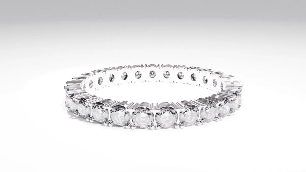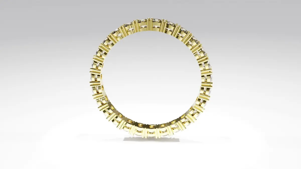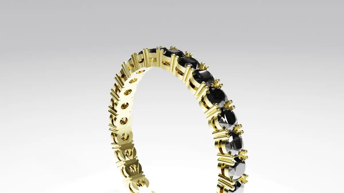 27 stones, size 2.0 mm. But i can do whenever u like. If you need all sizes please check my profile for packs of eternity. The prongs in the .stl file are more longer for comfort growing, casting and setting the stones.Ring size 17 mm. Available in STL, OBJ, and blend file to edit. Model is ready for easy growing and casting.