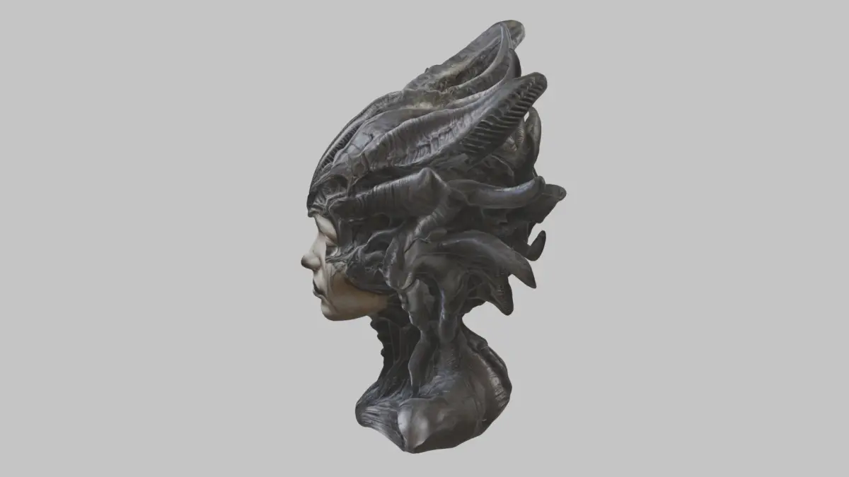 Ethereal HR Giger Inspired Woman Head Bust Low-poly 3D model