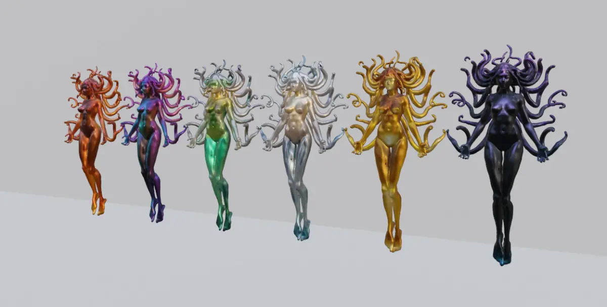 Enhance your project with this Ethereal Medusa 3D model, designed for professional use in animation, game development, visual effects, and 3D printing. Featuring six distinct color variations, this model offers exceptional versatility for a wide range of creative applications.