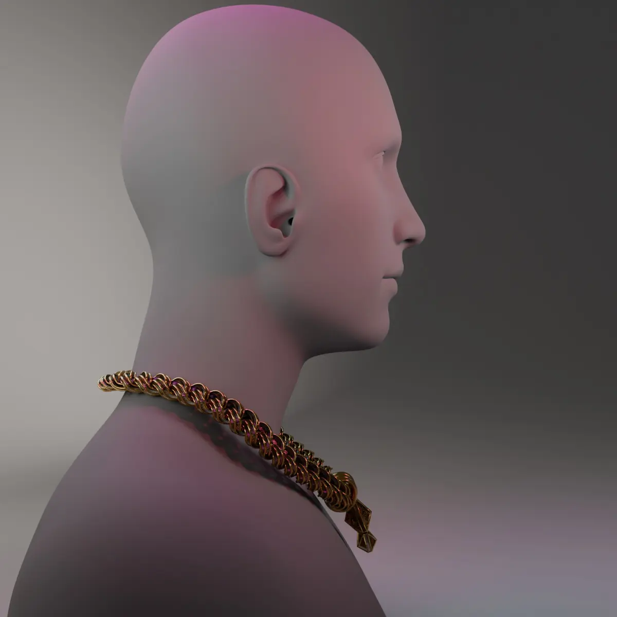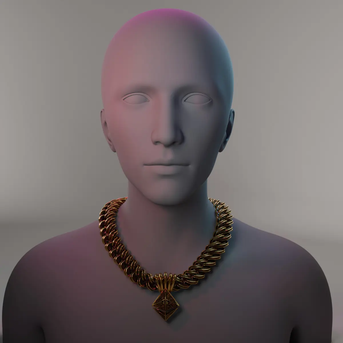 Elevate your style with this exquisite gold chain necklace featuring a captivating geometric pendant, designed to be a symbol of your connection to the Ethereum blockchain. Crafted with meticulous attention to detail, this piece exudes sophistication and timeless elegance. The intricate chain design and the striking pendant create a stunning focal point, perfect for any occasion.