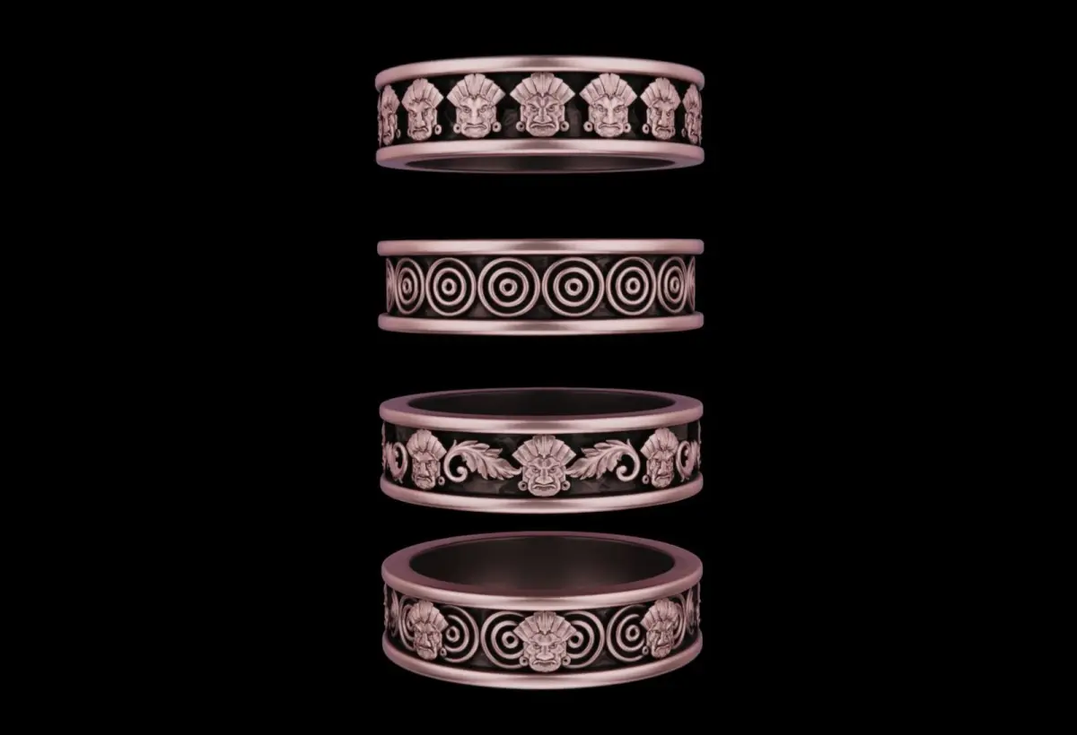 4 different ring in 6 different size ( USA6 _ USA7 _ USA8 _ USA9 _ USA10 _ USA11 ) suitable for 3d print and casting in oxidized silver , gold or any material you want .