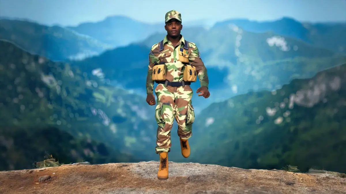 This model features a full body Ethiopian soldier in a rugged camouflage uniform, designed for mountainous environments. Each model has 3 levels of detail with QUAD polygons: