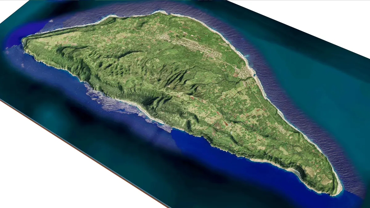 Eua island 3D model terrain. 3d model island of Eua, Tonga and with its landscape of mountains, beaches and forests.