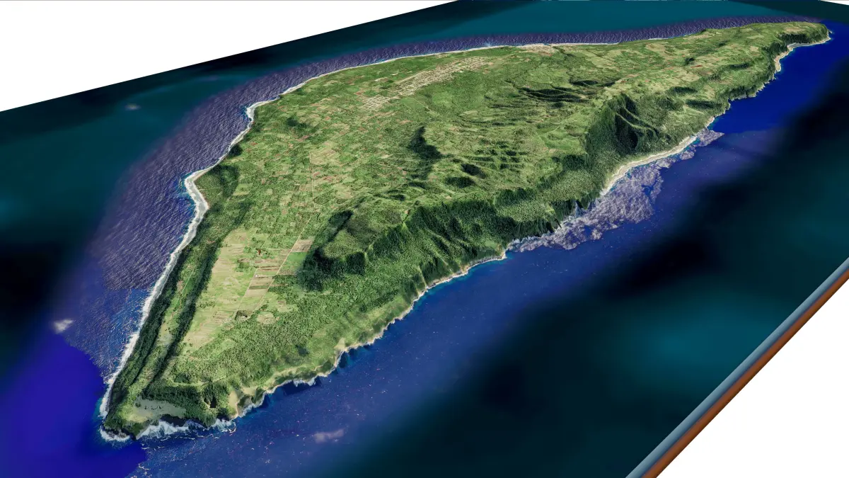 3d model landscape of Eua Island, Tonga archipelago, Caribbean Sea, Pacific Ocean, Tonga.