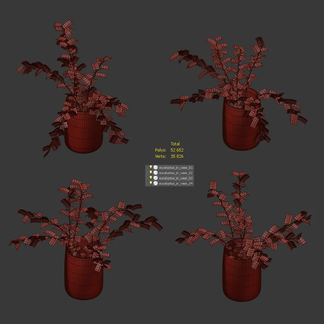 Eucalyptus in a vase. 4 models