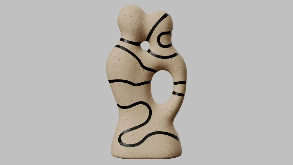 This is a 3D model of an abstract sculpture in the Eugenie Deco style, inspired by Bloomingville's aesthetic. The model features quad topology, is fully UVW mapped, and includes 8K texture maps. It is well-suited for interior visualization and decorative purposes. Multiple file formats are provided: .max, .obj, .fbx, .abc, and more.