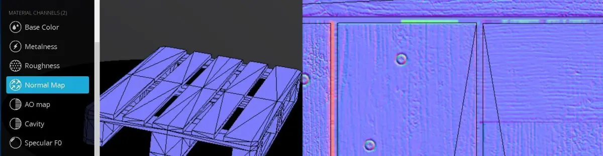 Here is the low-poly verion of my EUR wood pallet with color, normal and ambient occlusion textures in 4096 x 4096 resolution.Hier ist die low-poly Version der Europalette mit Farb, Normal und Ambientocclusion textur in 4K Auflösung.