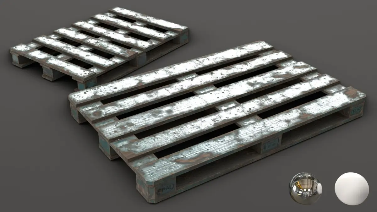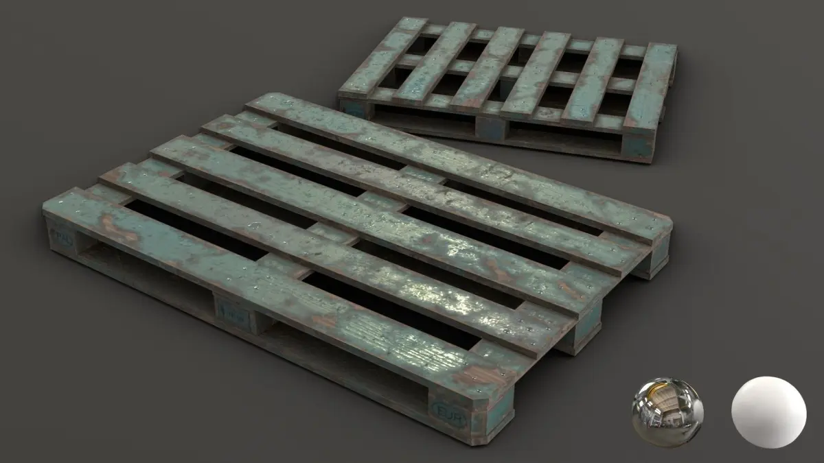 This asset includes 2 sizes of wooden pallets. A 1200 x 800 mm pallet (Eur-Epal) and an other to 880 x 620 mm (Dussledorf). This 2 objects are available individually or in 4 pre-assembled assets to be directly add into your own 3D scenes. Also, the model includes 2 variants of the textures with an additional oil leaks textures set more.