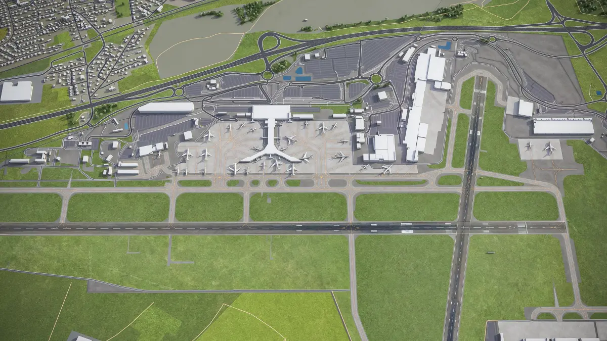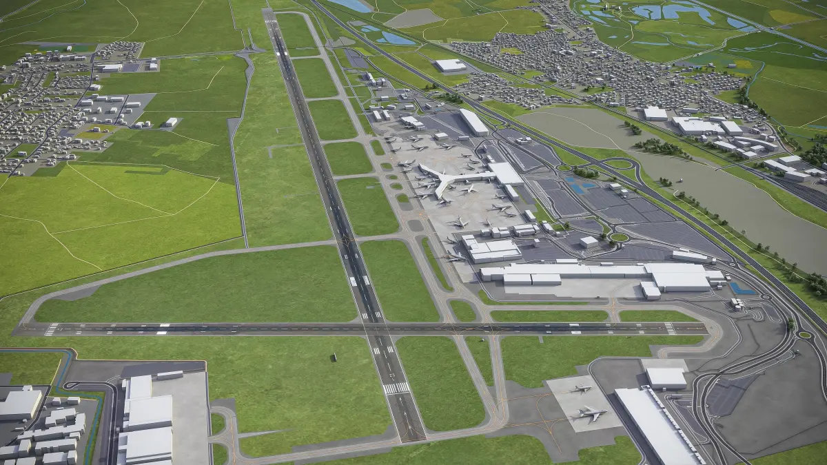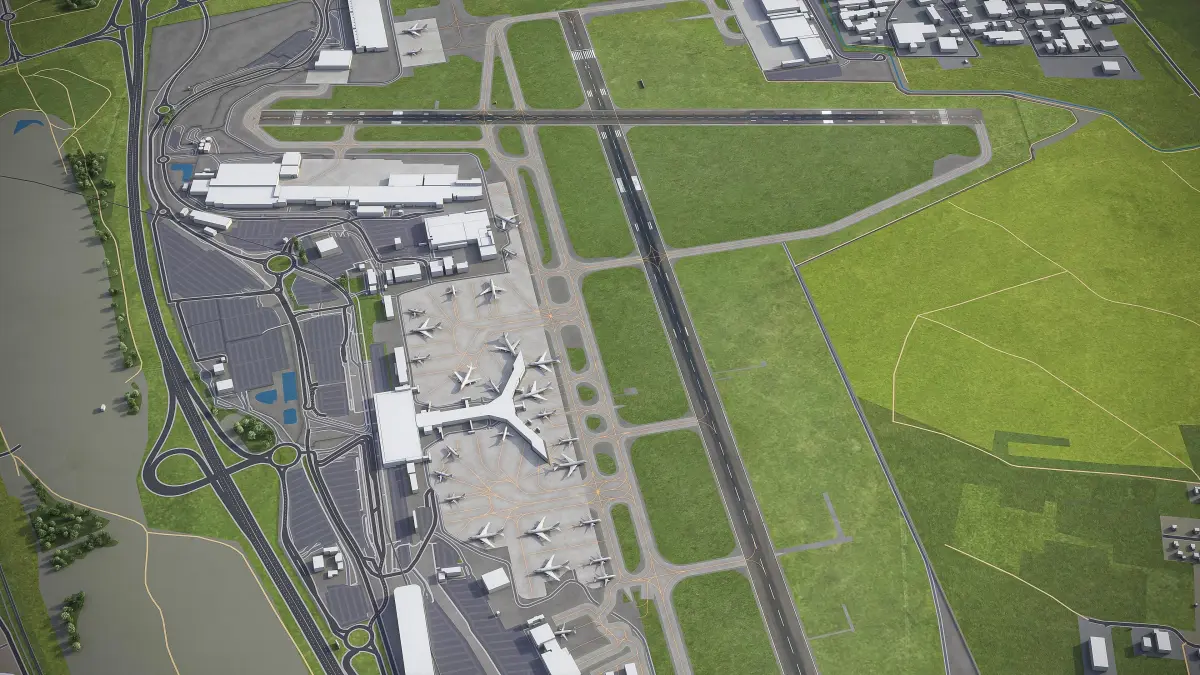 - Trees, vegetation, landuse and airport surface with the textures assigned