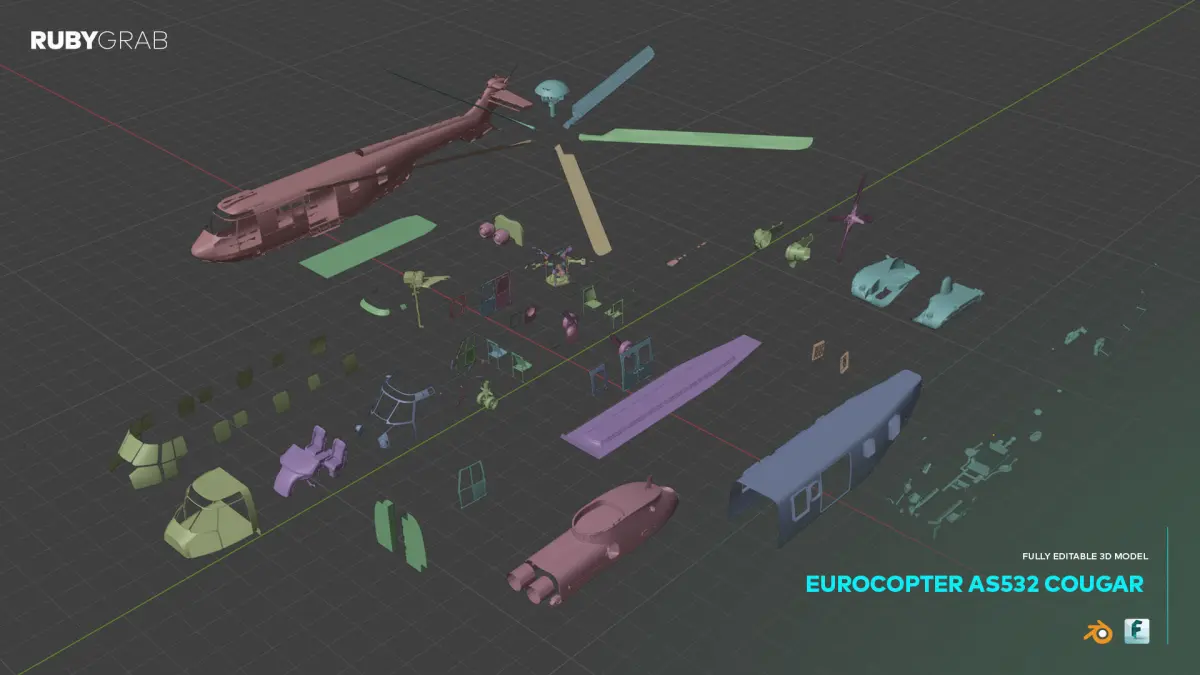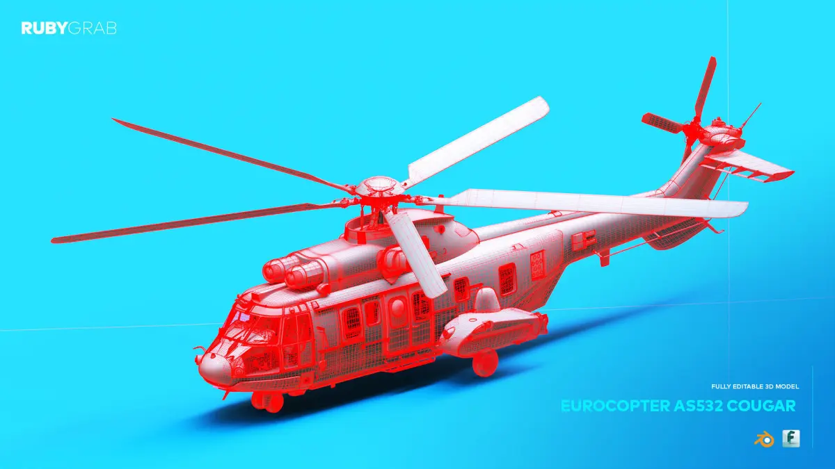 The Eurocopter AS532 Cougar is a highly detailed and fully editable 3D model of one of the most versatile medium-lift helicopters used in military and civilian operations. This package includes both .blend and .fbx file formats, ensuring seamless compatibility with a wide range of 3D design and visualization software. Perfect for use in engineering simulations, animations, or aviation-related projects, this model provides exceptional accuracy and flexibility for any professional or creative application. Its realistic design makes it a valuable asset for anyone working on helicopter-related visualizations or technical studies.