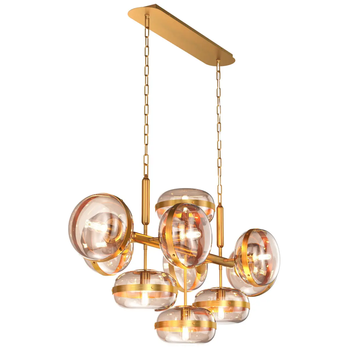 Width: 55.25 cm (21.75) Length: 137.8cm (54.25) Height: 69.22 cm (27.25) Overall Height: 253 cm (100) Finishes: Brass, Nickel Glass: Amber, Smoke