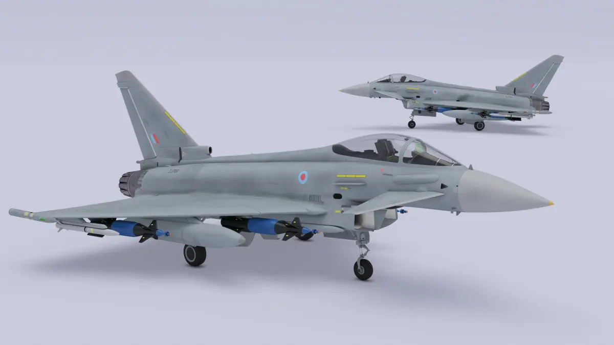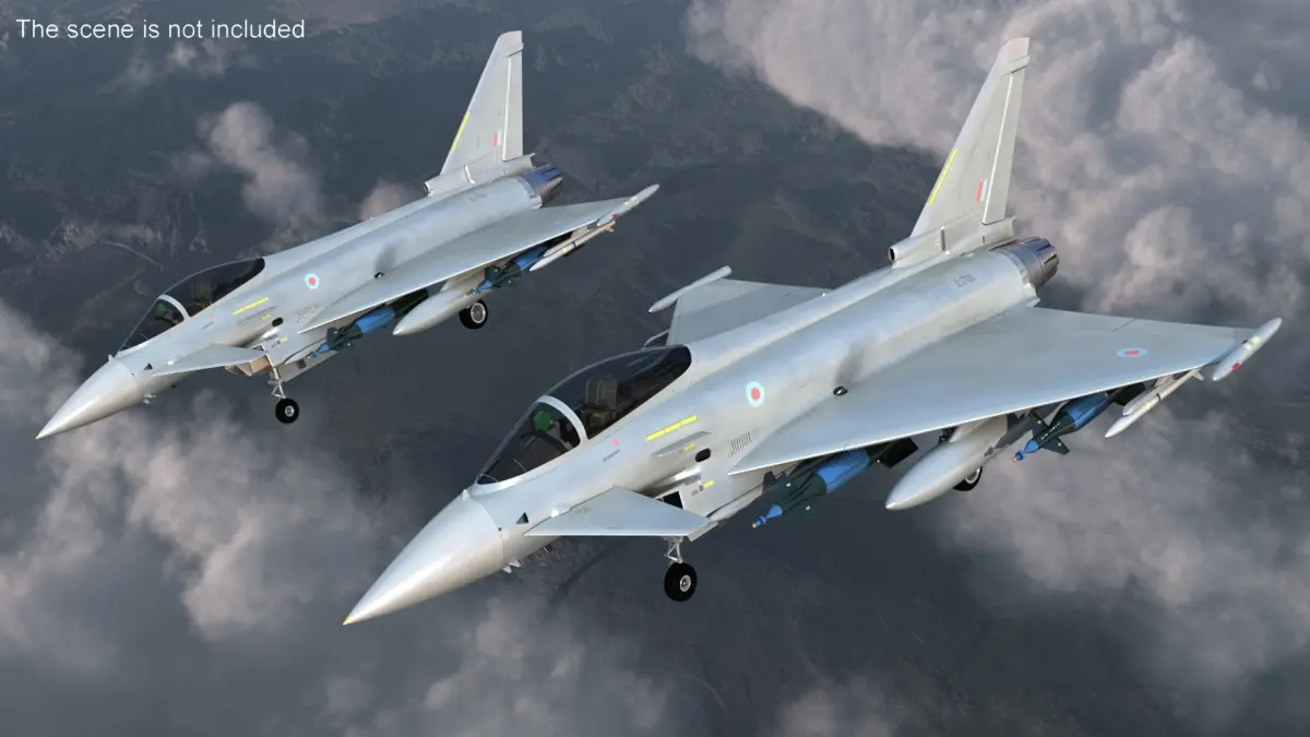 Eurofighter Typhoon Jet with Weaponry is a 3d model of a highly advanced multirole fighter aircraft, renowned for its agility and cutting-edge technology.