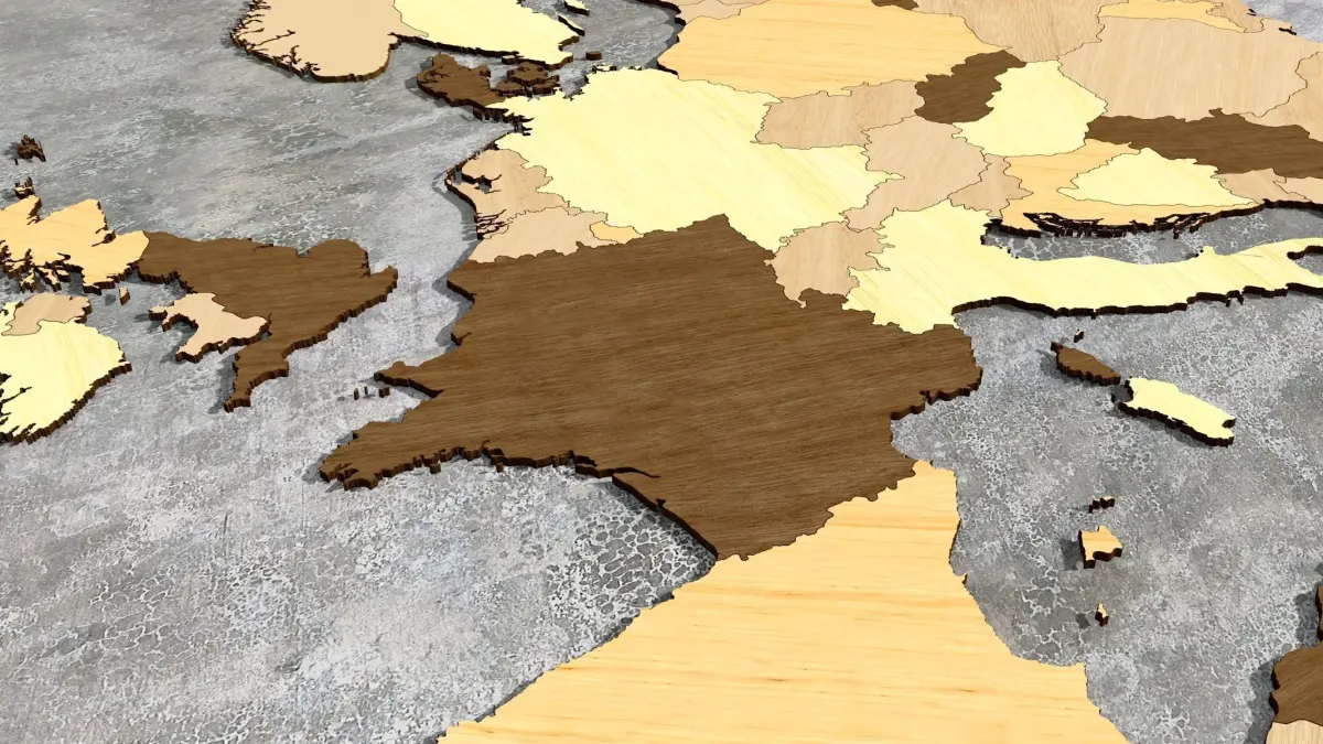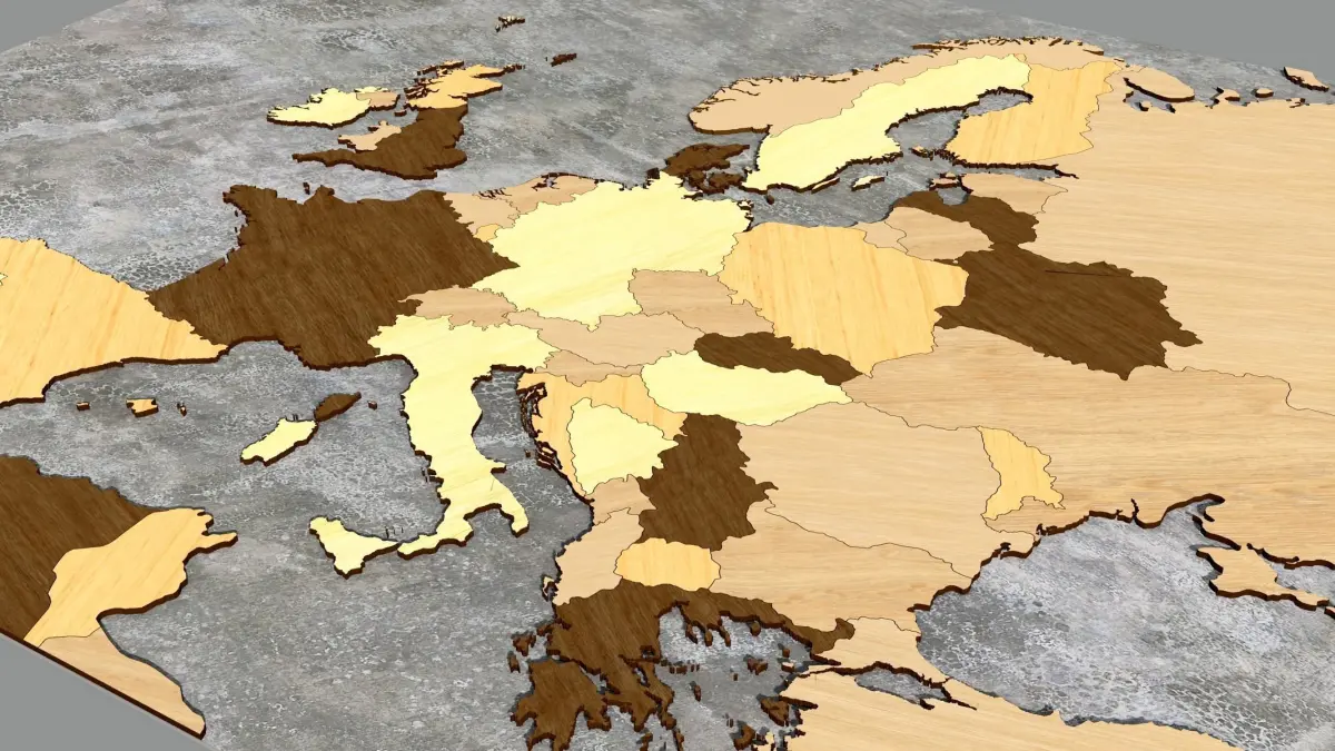 Europe map for wall decoration. Each Country is separate object.Top and side poligon faces are different material ID given.
