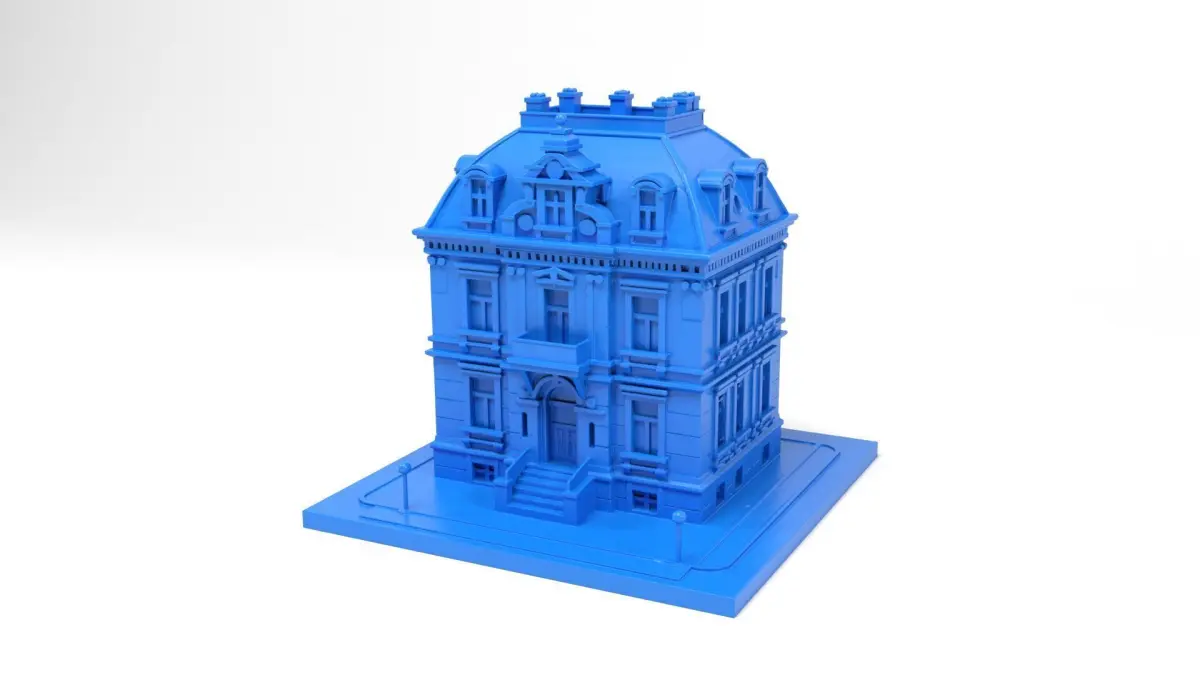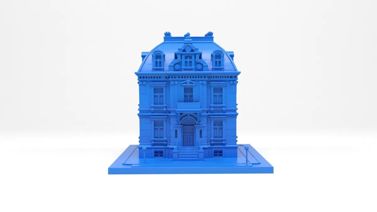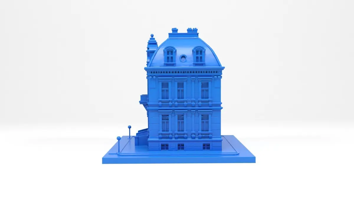 This model embodies the classic charm of a European architectural building, featuring detailed facades and intricate roofing.