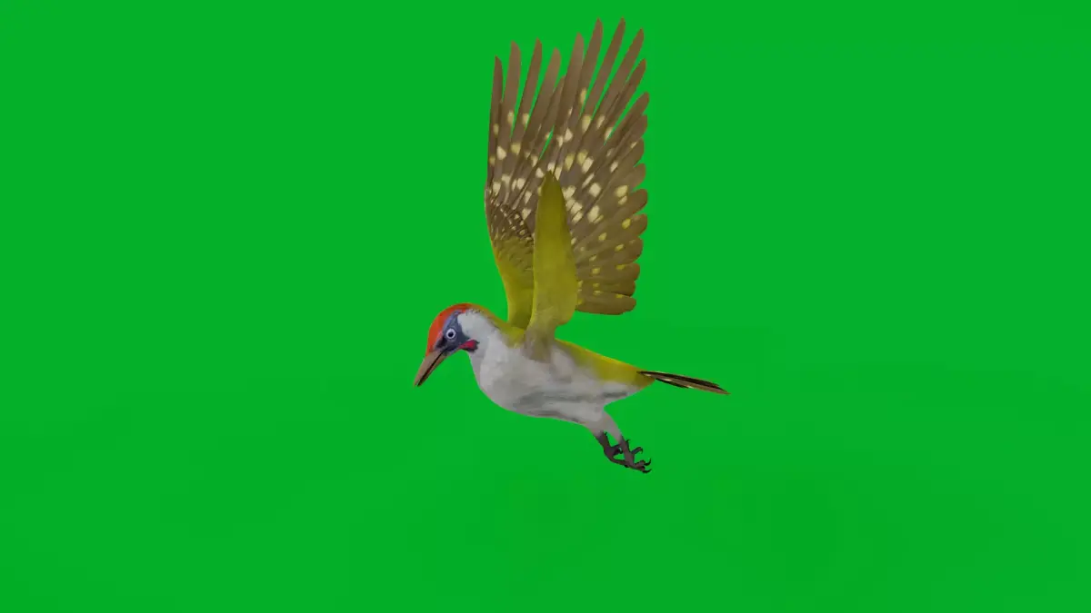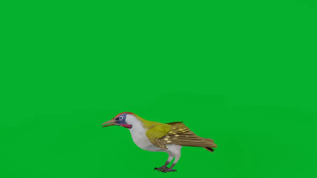 The European green woodpecker, also known as the yaffle and sometimes called a nickle, is a large green woodpecker with a bright red crown and a black moustache. Males have a red centre to the moustache stripe which is absent in females.. 3D European Green Woodpecker Bird Animal Model By Nyilonelycompany (nyc).