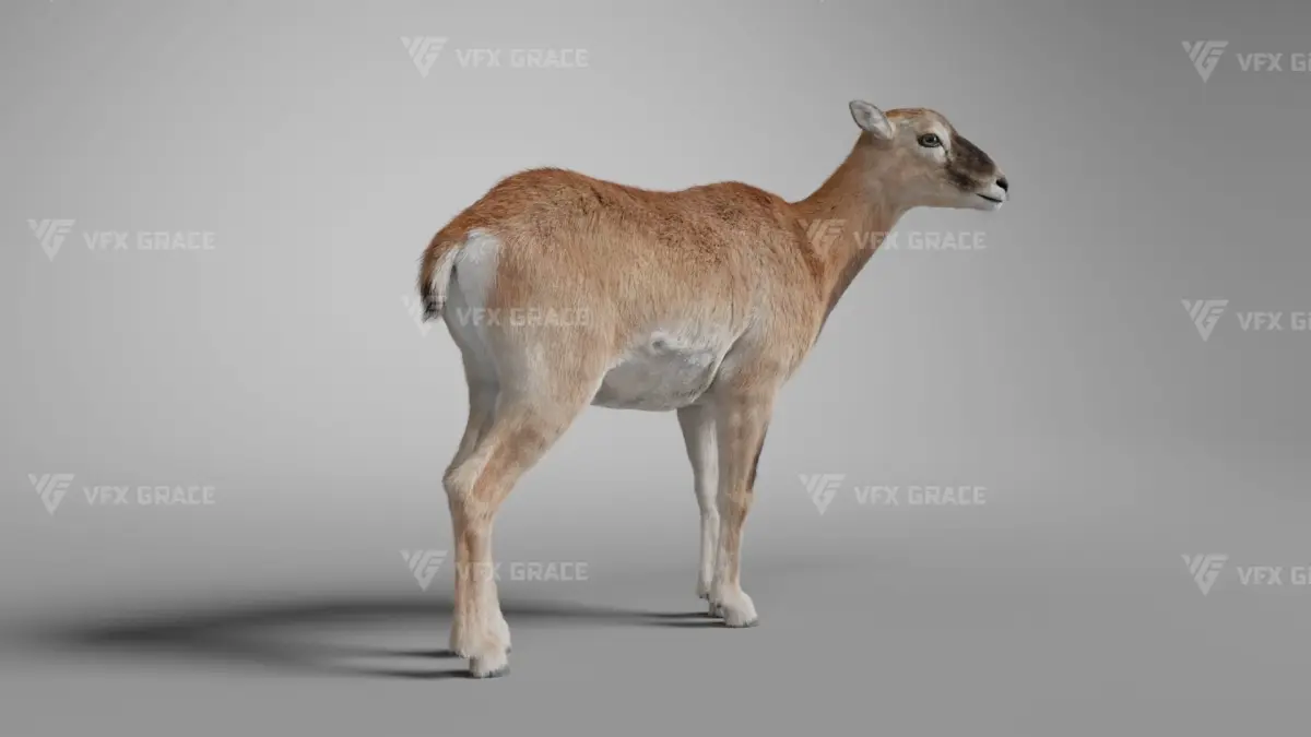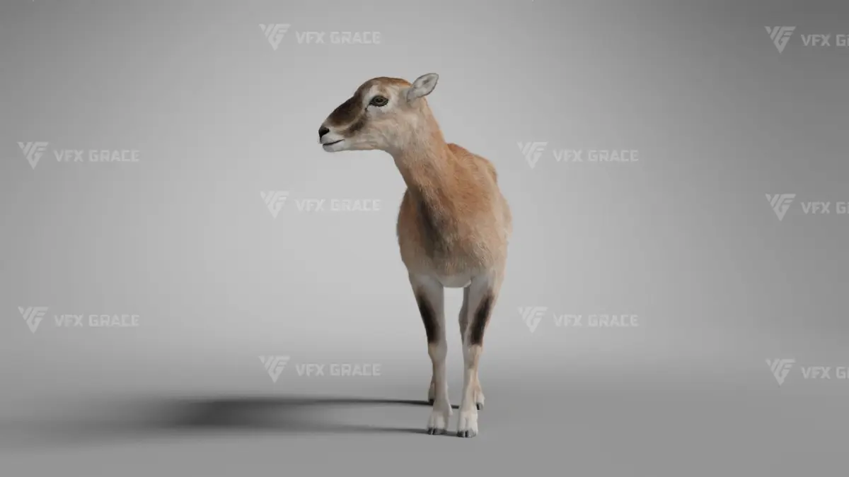 This is a high-quality female mouflon model, featuring textures, fur, rigging, and animations. The model has realistic muscle structure; the textures are in UDIM format with 4K resolution, making the effect more realistic. Additionally, it includes four lively and realistic animations. This model is made with Blender and Cycles renderer at real-world scale.