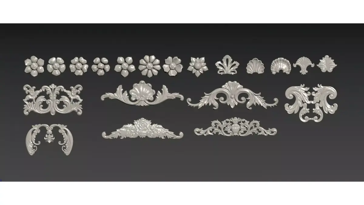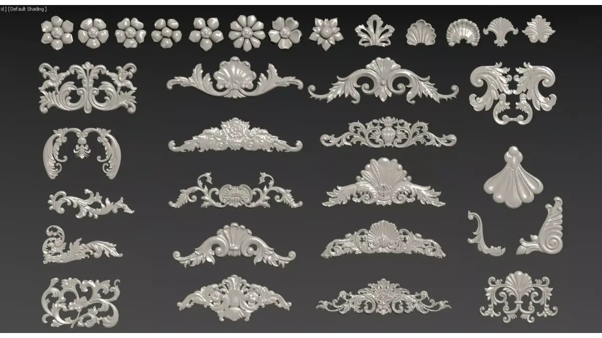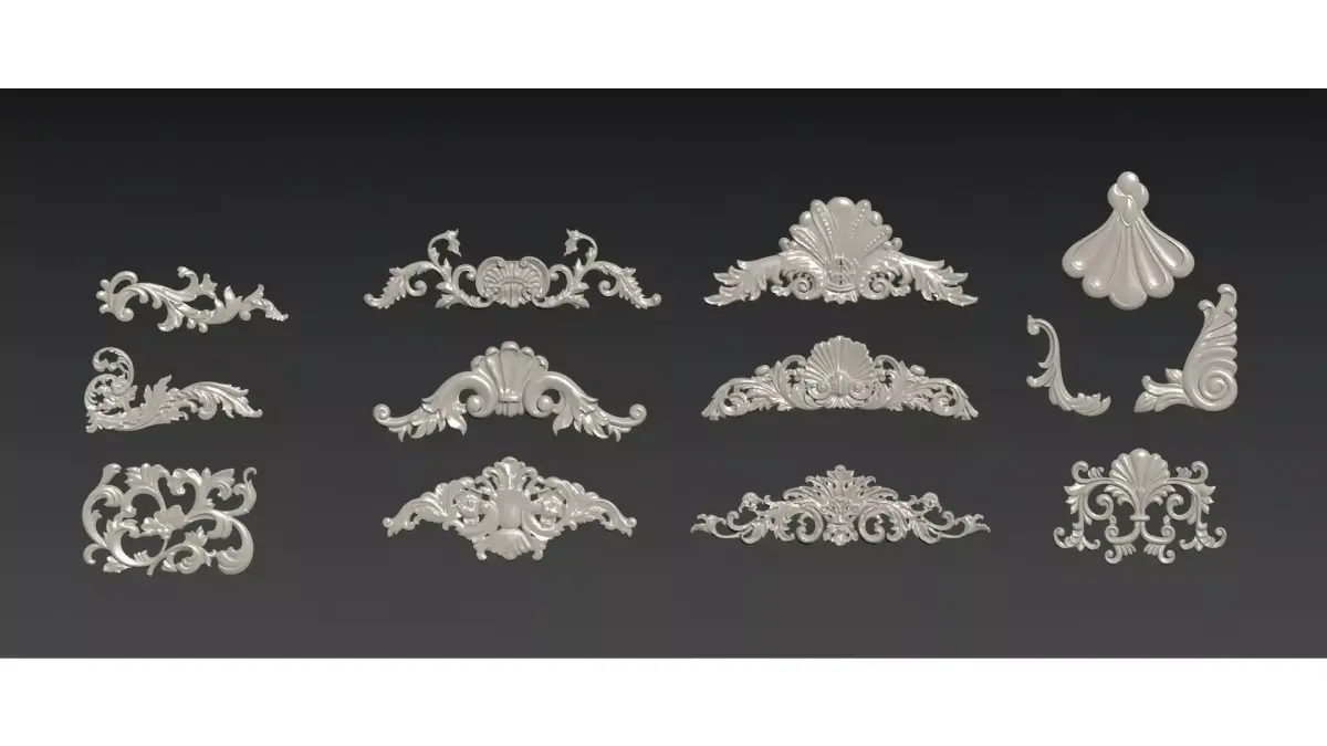 This is a collection of 3D models of European classical-style gypsum carved decorations, including various forms of decorative components such as corner carvings, waistlines, and ceiling carvings.The design integrates the aesthetic features of Baroque and Rococo styles, with natural elements like scrolling foliage, flowers and seashells as the core patterns. Boasting soft and intricate lines as well as delicate relief layers, these models exude an elegant and luxurious retro texture.Suitable for European-style, French-style and vintage interior spaces, they can be used as decorative embellishments for walls, ceilings and furniture, enhancing the refinement and classical ambiance of the space.