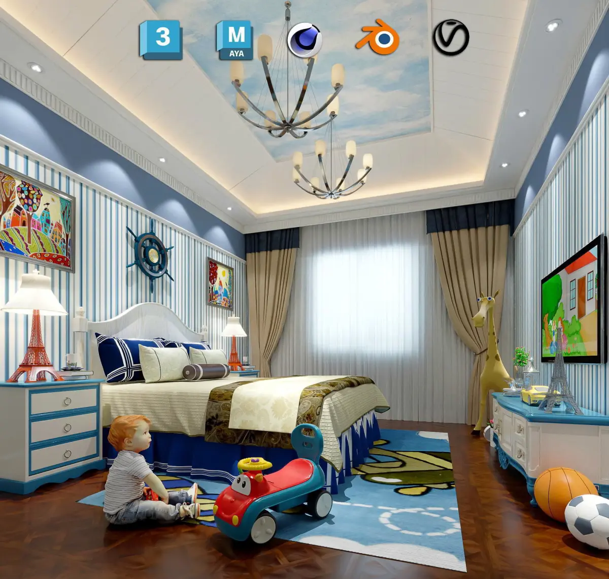 A complete 3D scene 3d kids room - children room with all the objects you need to design a child's space.