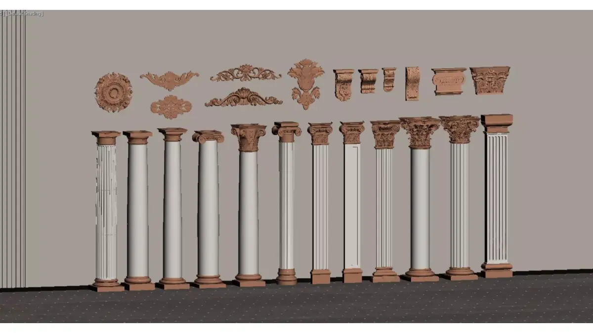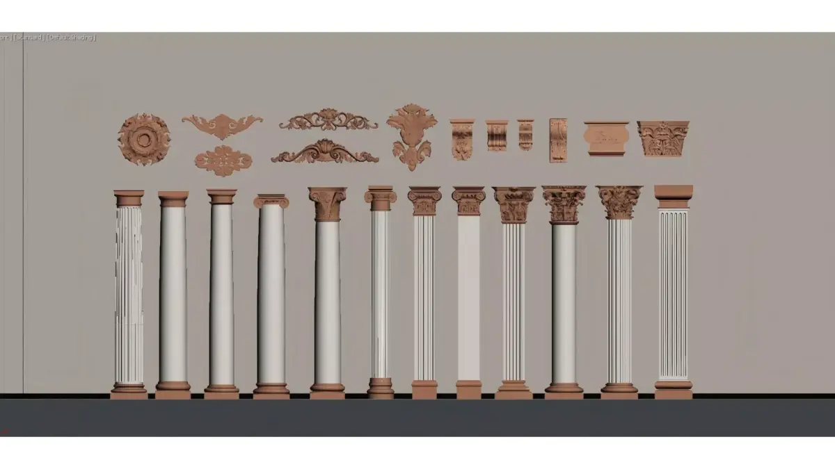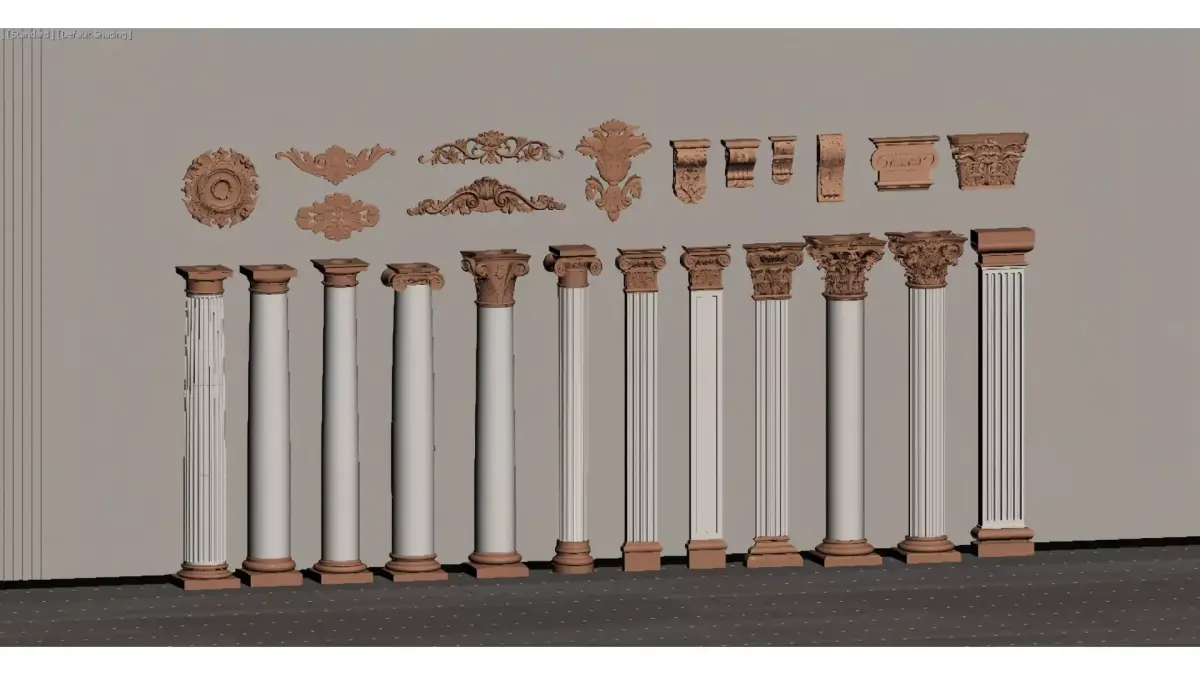 This is a set of European-style decorative components, including a variety of gypsum Roman columns (matched with carved capitals / plain shafts), carved decorative mouldings, capital ornaments and so on. With off-white and gold as the main color scheme, they feature delicate and intricate shapes. Suitable for the decoration of background walls, foyers and other areas in villas and light luxury spaces, these components have both decorative functions and European classical texture.