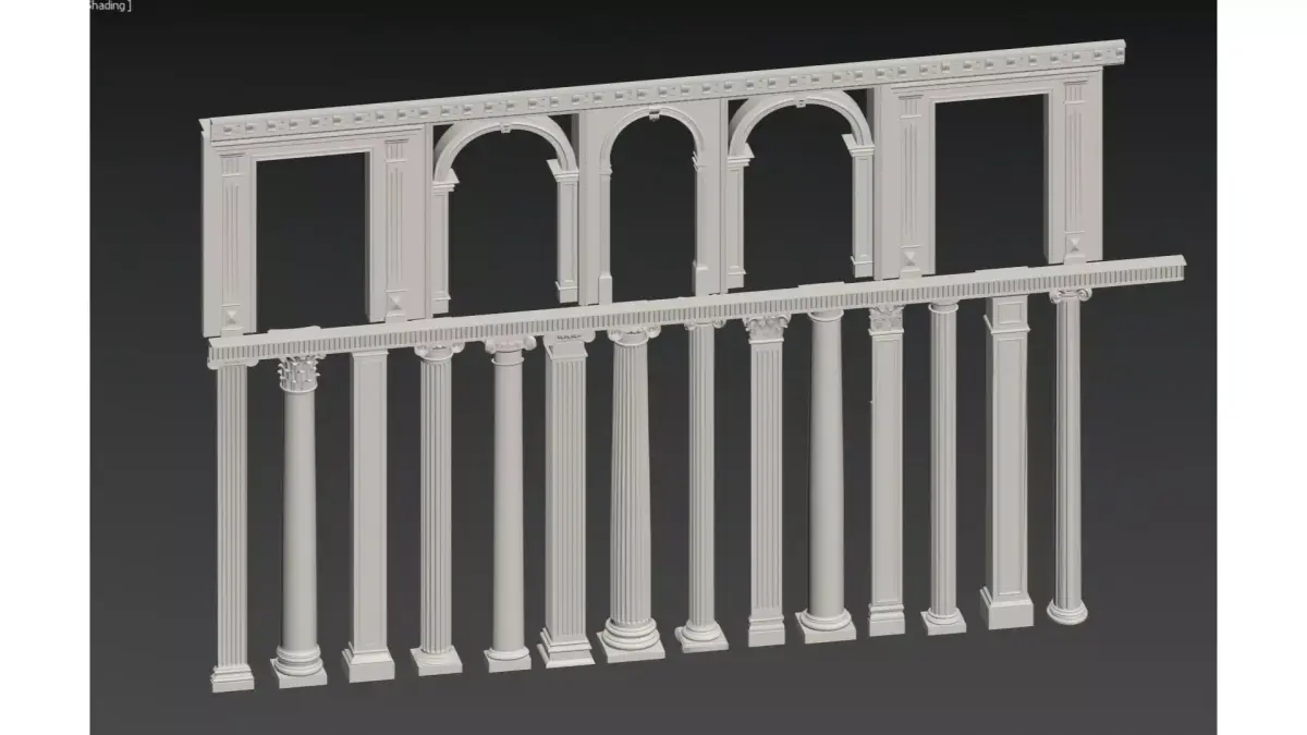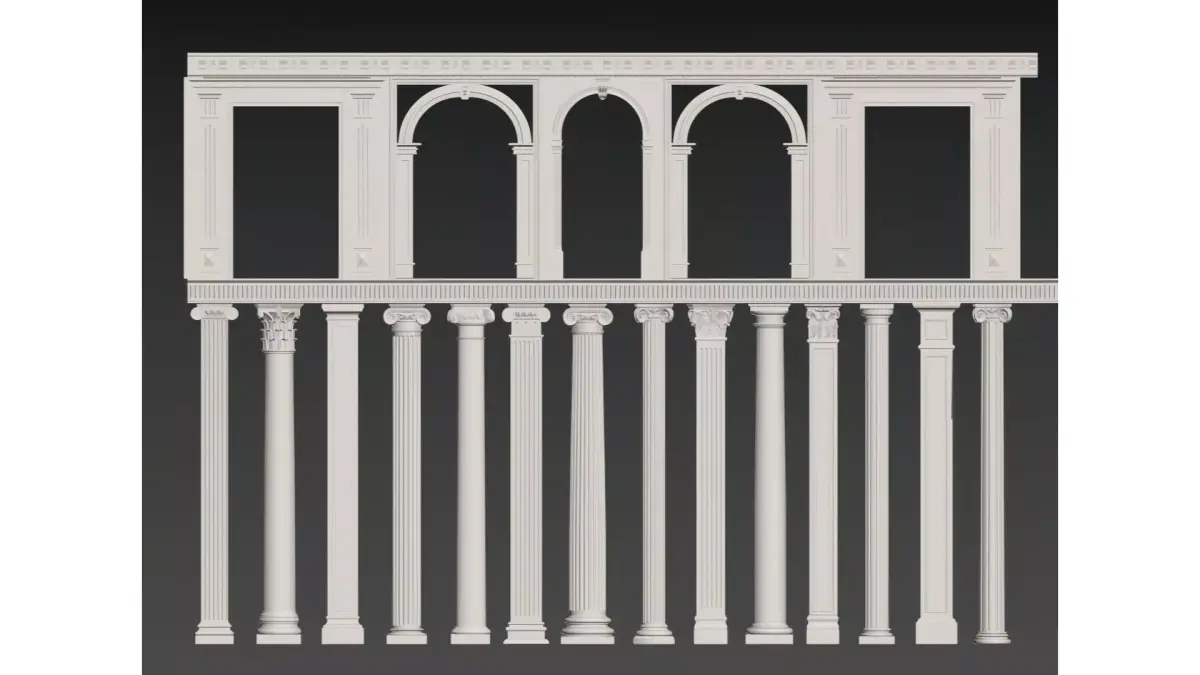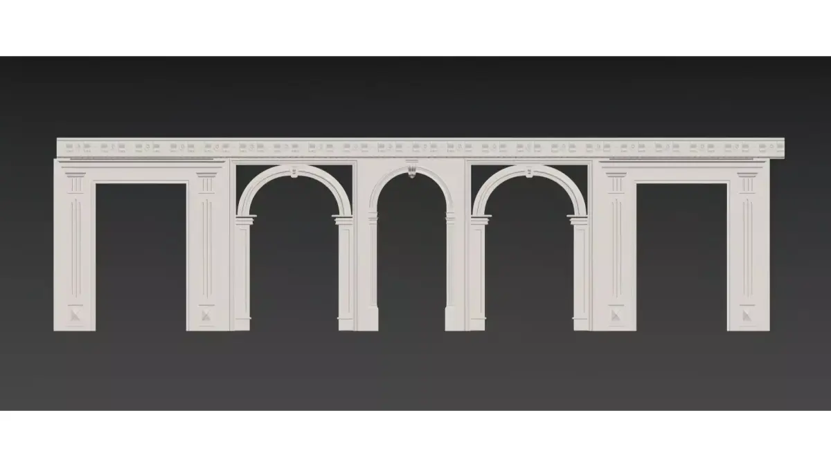 This is a wall decoration design that incorporates neoclassical architectural elements, with Roman columns, arch shapes and gypsum reliefs as the core visual language. It recreates the orders of classical architecture (such as Corinthian capitals), cornice moldings and symmetrical structures, and is paired with recessed lighting to create a distinct layered light and shadow texture.Presented in a pure light color palette as a whole, it not only retains the elegance and solemnity of European classicism, but also meets the light luxury aesthetic of modern spaces through simplified treatment. Suitable for use as a space background wall or decorative facade, it conveys a retro and exquisite artistic atmosphere.