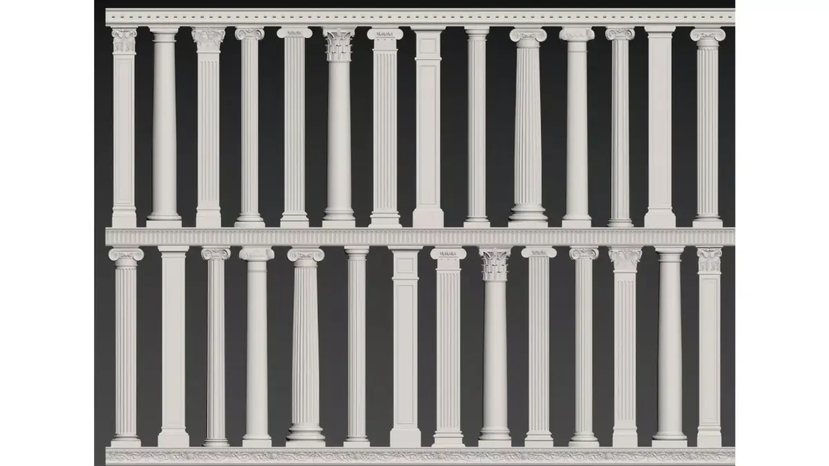 This is a double-layer recessed wall decoration featuring Greco-Roman orders as the core element. Made of marble-like material, it reproduces classical architectural components such as Ionic columns. Combined with the layered colonnade structure and concealed lighting, it integrates neoclassical aesthetics into modern soft furnishings. Boasting both artistic appeal and a light luxury texture, it serves as a distinctive wall ornament for spaces designed in the European classical style.
