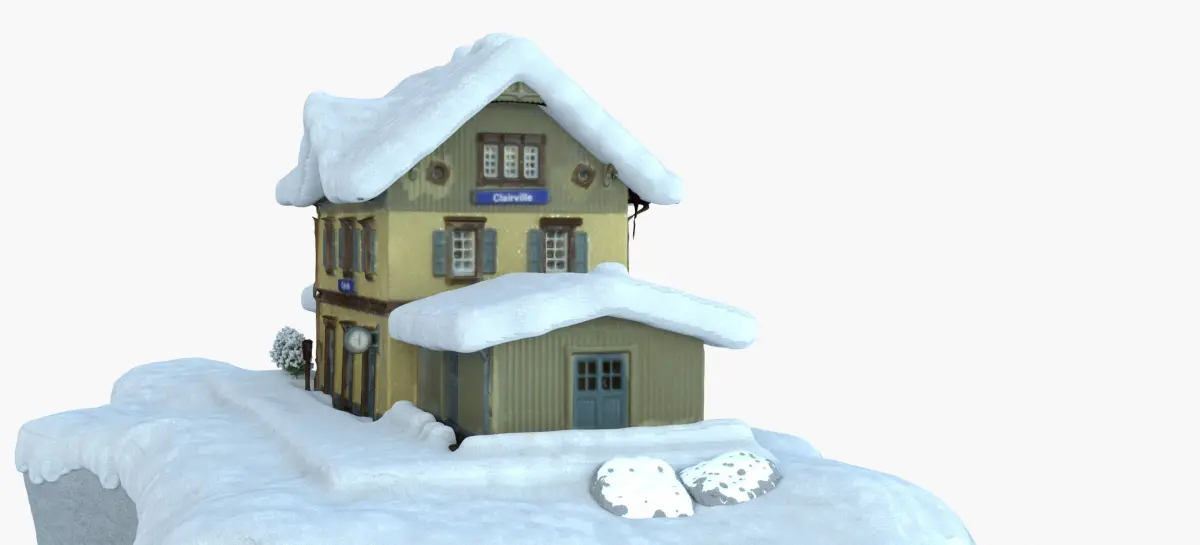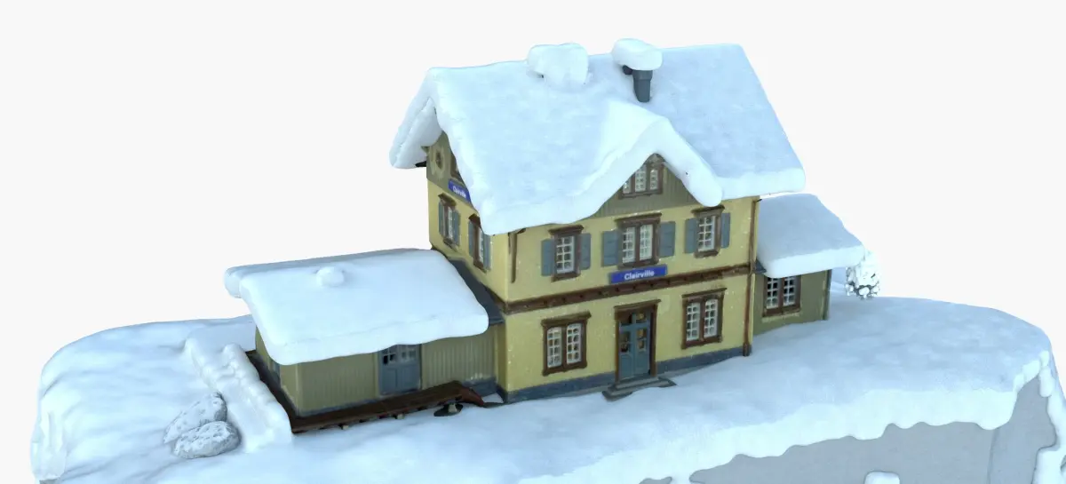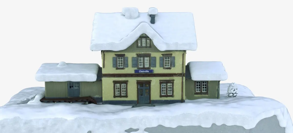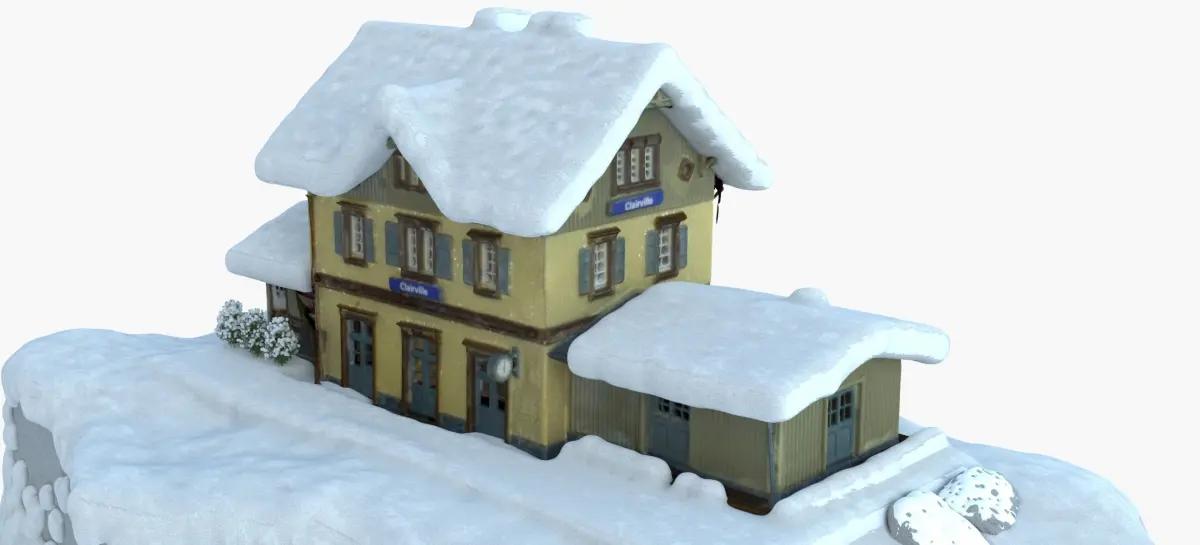 PRODUCT BRIEF DESCRIPTION: A European Train Station set in the middle of winter season landscape.