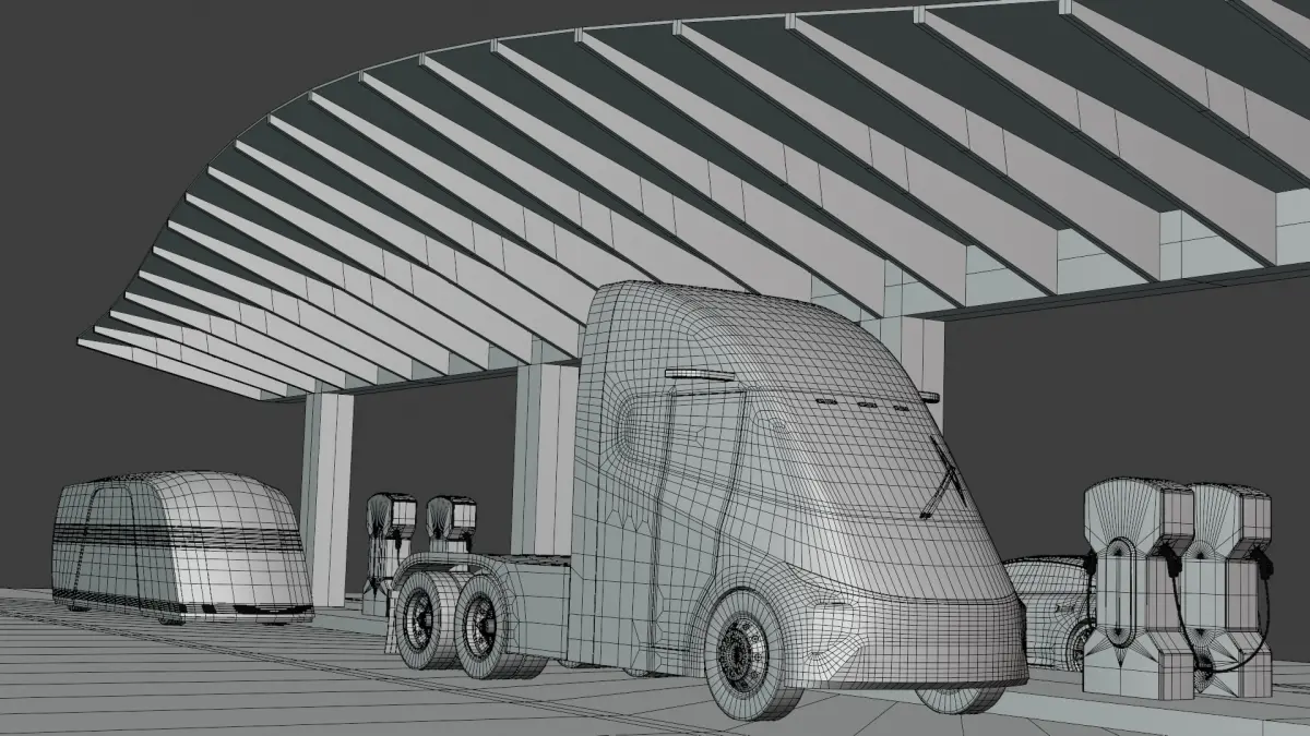 - This is 3D model of EV charging station with future semitruck, Luxeed S7 and Tesla Robovan.