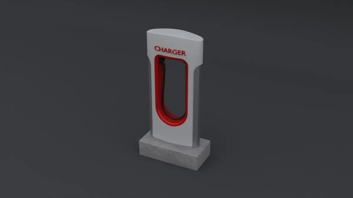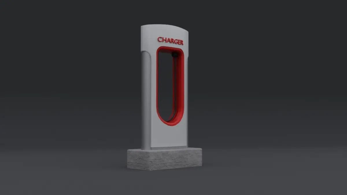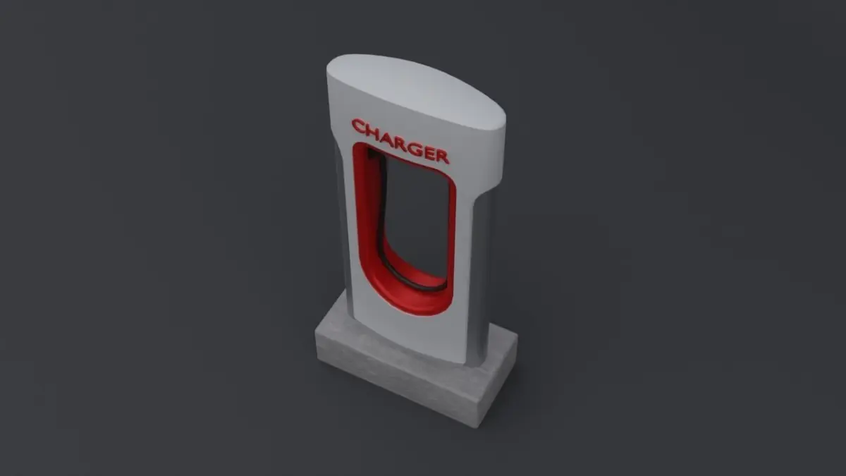 An EV Charging Station (based on Tesla Superchager) that was made by blender for modeling part and subtance painter for the texture.