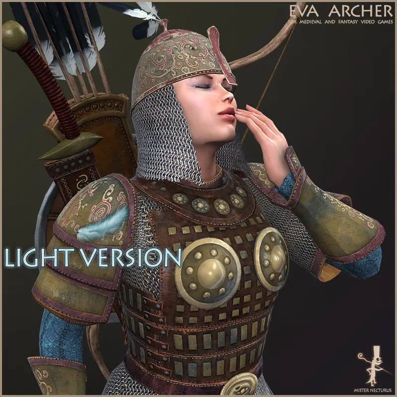 Armor combined from 8 parts (mask, bridle, reins, harness, skirt, saddle, bags and stirrups) and has 8,302 polygons, 8,453 verts. and 16,270 triangles. LOD version has 5,591 polygons, 5,895 verts. and 10,880 triangles.