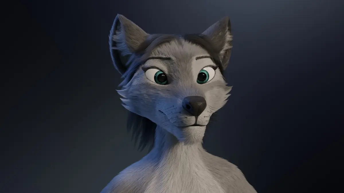3D model of an female wolf made in Blender (.Blend) that I named Eva. Rig , Hair and Fur only in blender, other formats only model mesh