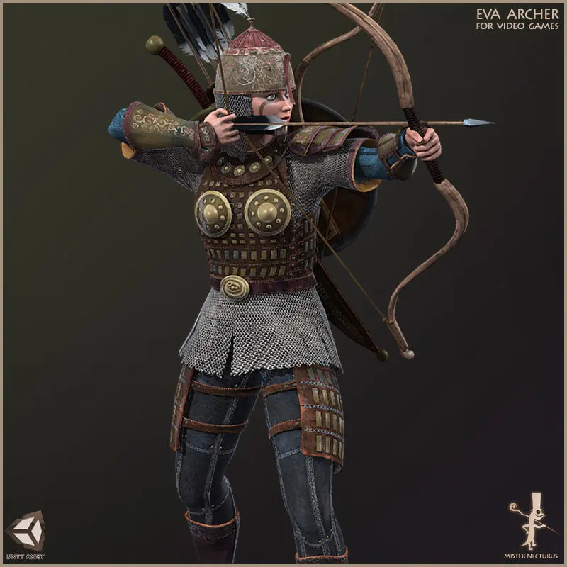 Original 3D MAX file with animated character (112 animation clips) included .Original 3D MAX file with rigged character in T-pose included.3 different colors scheme for armor included.2 body textures (naked and with underclothes) included.2 hairs and beard styles included5 Hairs textures for each style included.PartsBody parts: Head, Hair, Hands, Arms, Torso, Legs, Feet,Armor parts: Shirt, Chest Armor, Helmet, Bracers, Belt, Paints, Boots, Leg Armor.Weapons: 2 Shields (same), 2 Swords (same), 2 Bows, Arrow in hand, Quiver with 6 arrows.