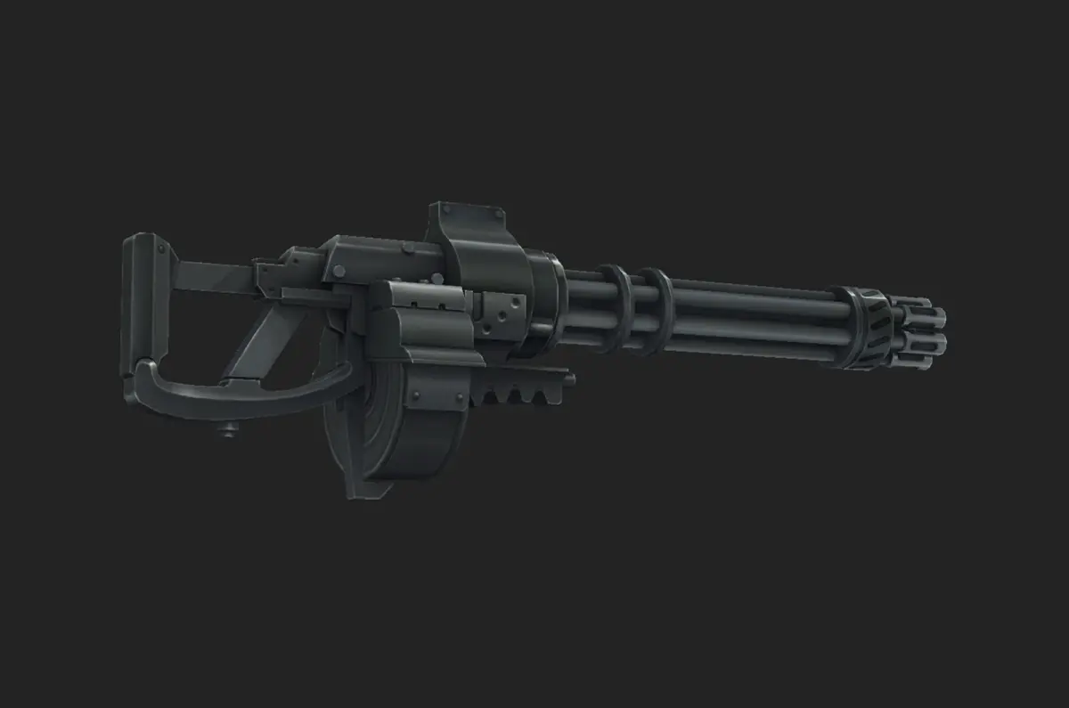 This is a hand-painted low-polygon model of a Gatling gun game. The design is based on the handheld weapon of Unit 1 in Neon Genesis Evangelion.