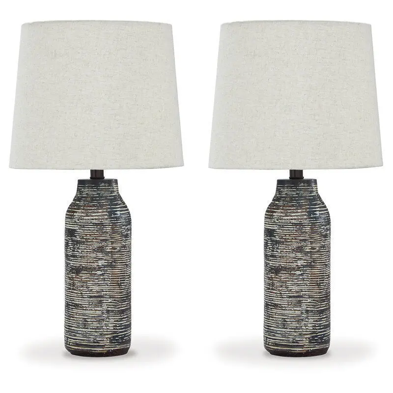 - Effortless with a fashion edge, this 26" Table Lamp lights your home with urban industrial vibes. Black and white finished paper composite surround the base with a worn, textural aesthetic.