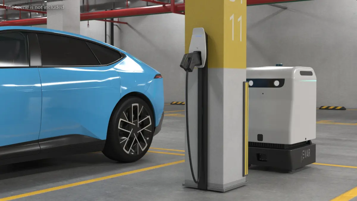 EVAR Parky Charging Robot is a three-dimensional model of PARKY EV Robot, that is designed by EVAR, and that is an autonomous charging solution (EV recharging robot) for electric vehicles.