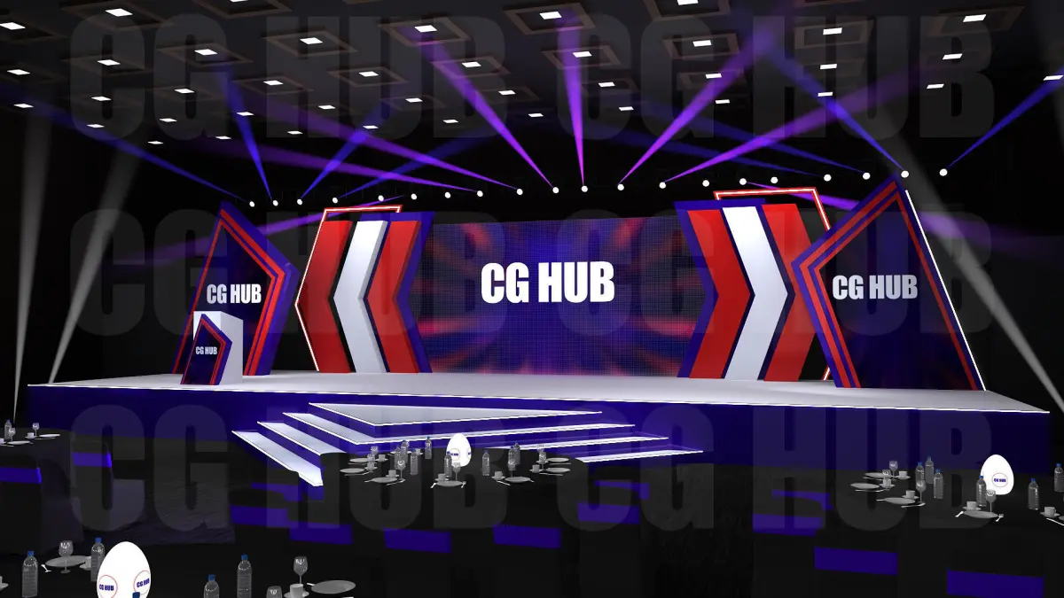 3D Stage deign Stage Size- Platform-48ftx20ftx2.5ft Center Screen-6mx3m. Scene is ready to render as seen on the previews. Light setup and all materials are included. Renderer:V-Ray 5.0 Format: