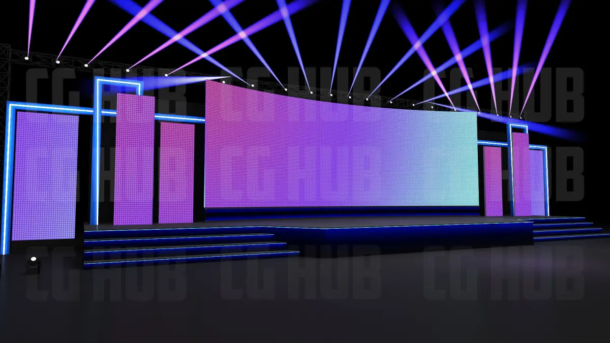 3D Stage deignStage Size-Platform-60ftx20ftx2.5ftCenter Screen-12mx3.5mScene is ready to render as seen on the previews.Light setup and all materials are included.Renderer:V-Ray 5.0Format: