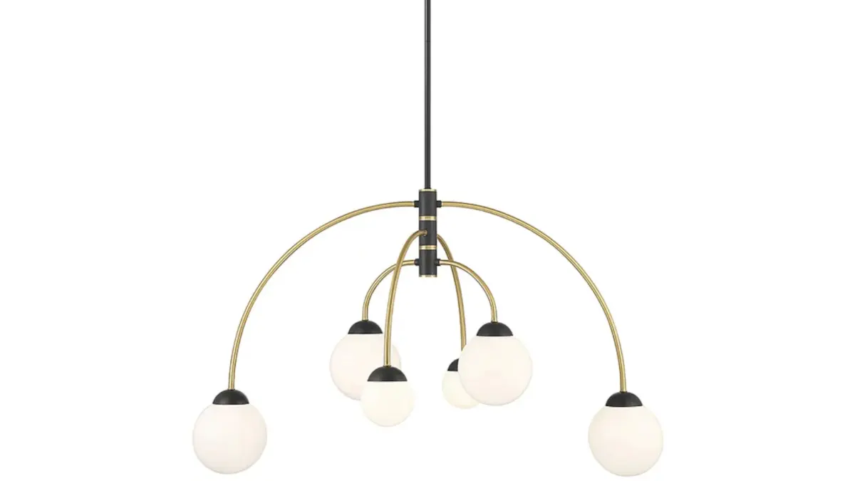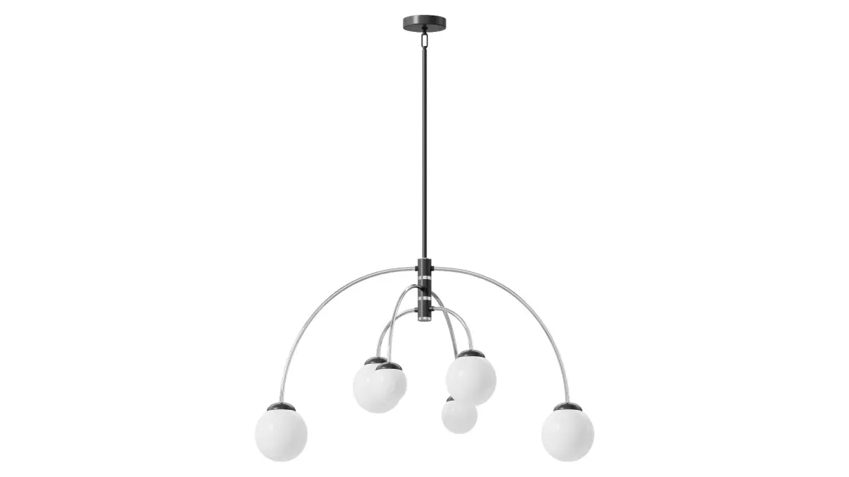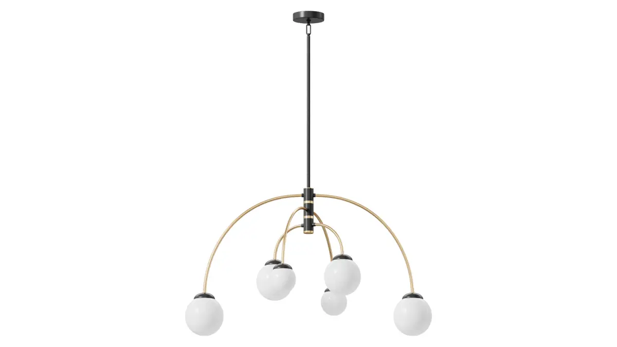 Make a grand statement. This unique chandelier features a classic design with a modern twist. Made with a metal frame and frosted glass shades, it showcases six lights that provide ambient illumination. With adjustable length and dimmable options, it's perfect for any residential space. Let this chandelier be the centerpiece that elevates your decor.