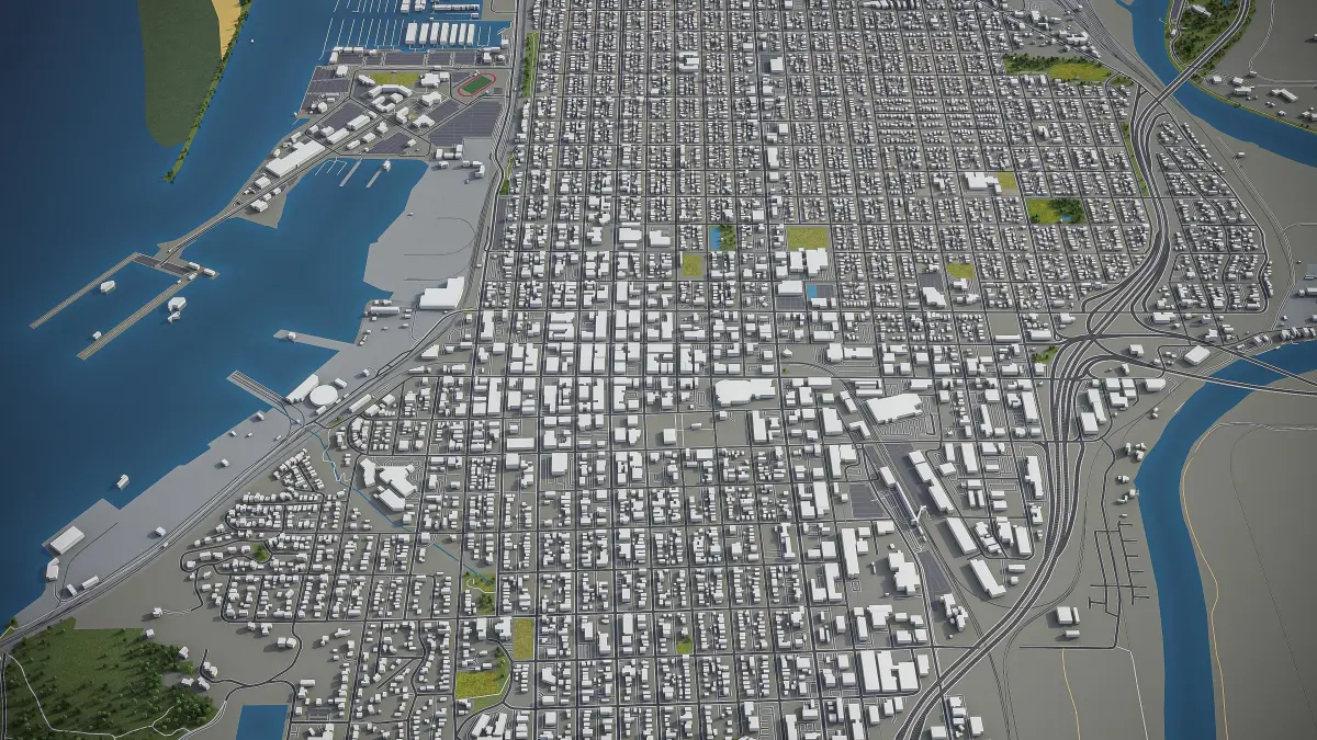 - Full city extents up to 100 x 100 km — or crop to an area of interest for better format compability and scene performance
