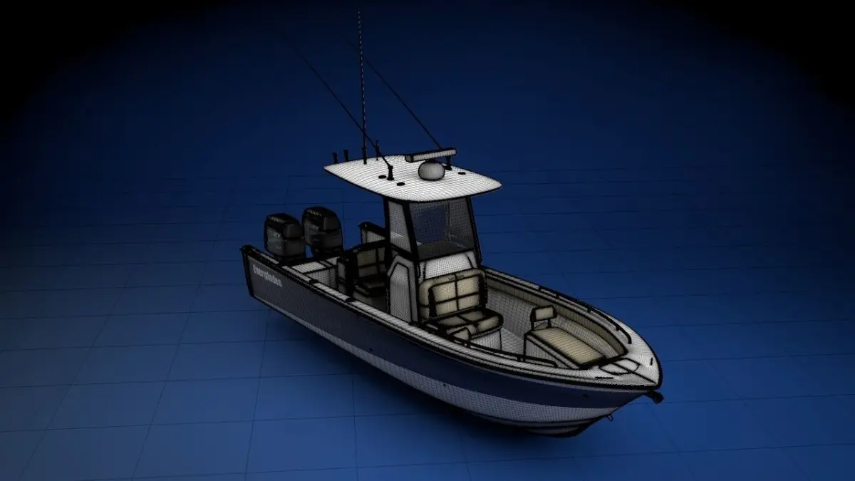 The model was created in C4D R15 but has individualized textures for other programs. In C4D the subdivision is ready for any smoothing you may desire, but for all other programs the default subdivision is a factor of 2 for high res close up and optimized texturing. This model features all the components of the boat with a detailed center console, all hatches and cushions can be moved to open up.