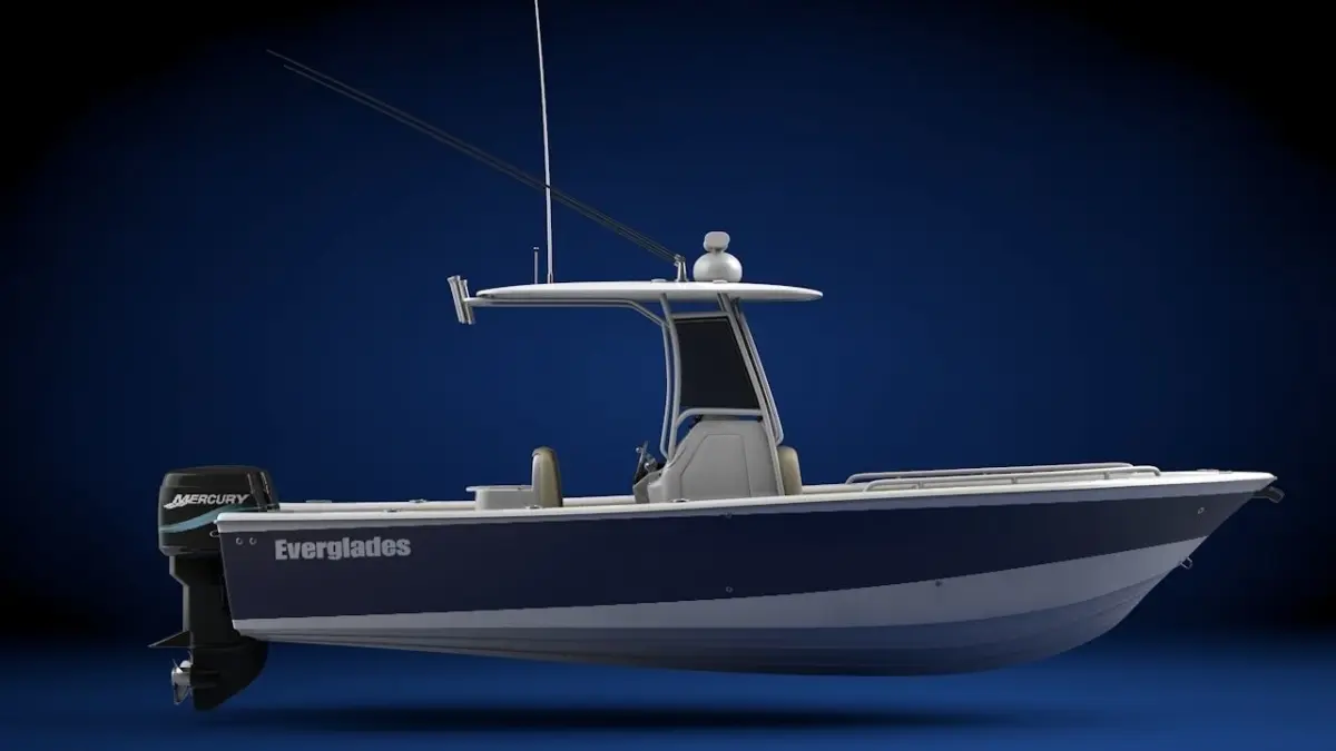 This was a project thanks to School Of Thought to show the beauty and luxury of the company Everglades focusing efforts on the 273 Sport Fishing Boat. Like a Criss Craft this is a boat that doesn't overlook anything in terms of clean lines, strong build, and luxury across the board. This model is a representation of the smaller 273 which is a 29' bow to stern housing twin 250 Mercury motors.