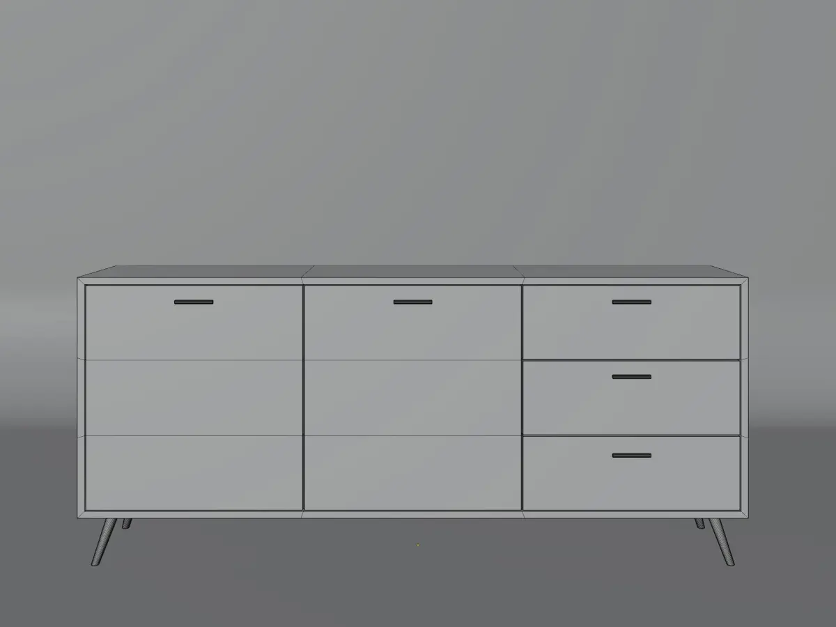 Mid-Century Modern Sideboard from Wayfair, modelled with reference to their website.
