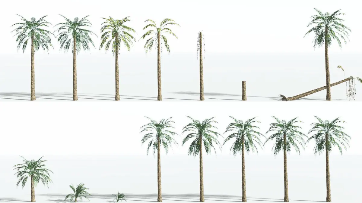 - Young -- 10,760 polygons, 19,443 vertices -- 11.07m tall. Smaller plant, some half way through its maturing cycle.