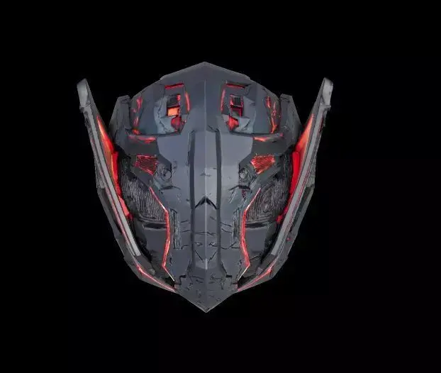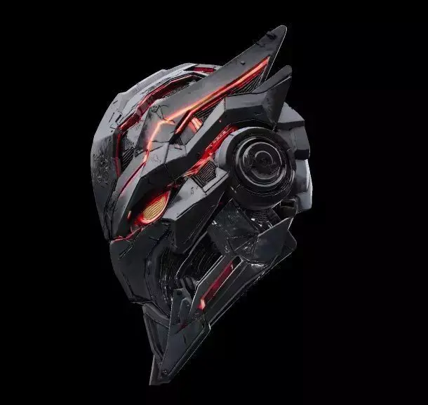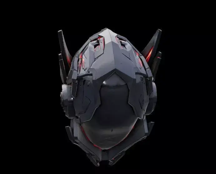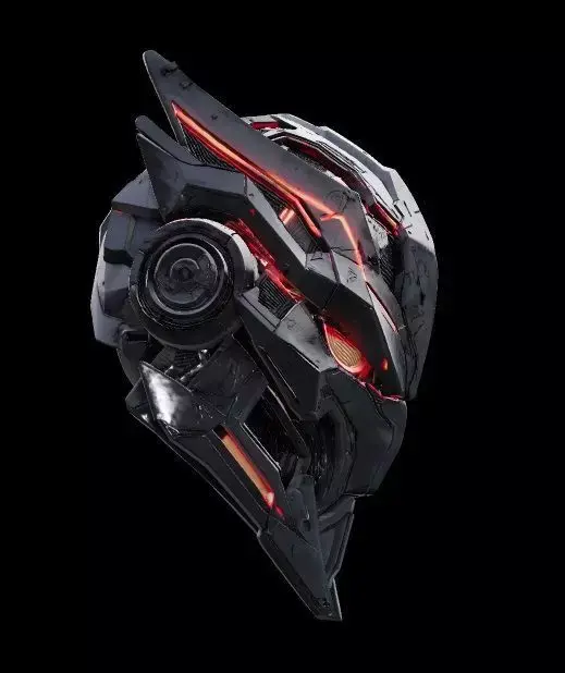 This high-quality futuristic robotic helmet 3D model is designed with a bold cyberpunk aesthetic, featuring aggressive angular armor plating and glowing red neon light accents. The design combines advanced sci-fi technology elements with a sleek mechanical structure, making it perfect for games, cinematics, concept art, VR/AR projects, and NFT visuals.