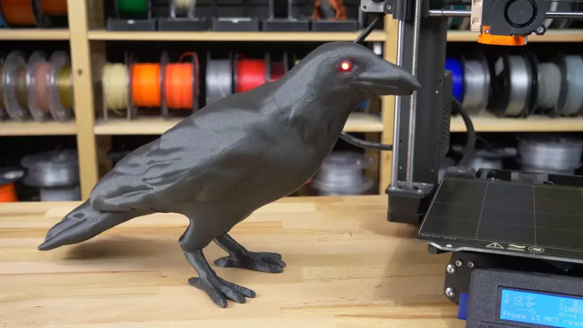 Features: multipart STL (body, head, beak, feet), hollowed for wiring, snap-fit LED/battery holder, realistic texture