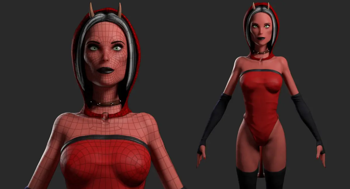 Evil Woman lowpoly character for game or film.