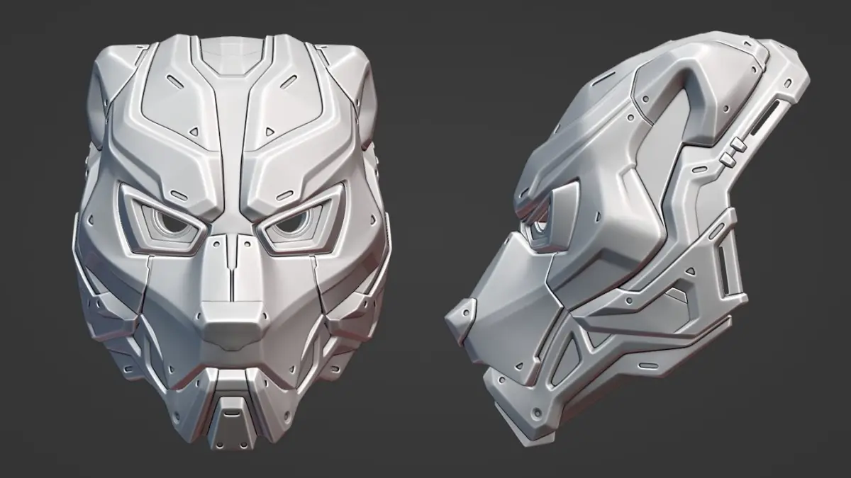 Another cosplay mask project combining animal and sci-fi stylization by Ruslan Asanov (@RTprops). The mask will fit a head 15 to 16.5cm wide. The wall thickness of the model is 3mm. Ready for printing by parts.