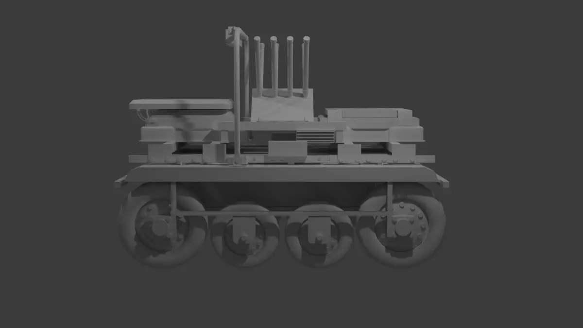 EWS Ground Drone based on EWS Ground Drone Volya-E. Ukrainian military Anti Drone System. Optimazed game-ready model. But without materials. All face oriantation in normal. Military mashine with skeleton mesh. Model ready for military game/simulator Polygons - 32892 Vertices - 19404